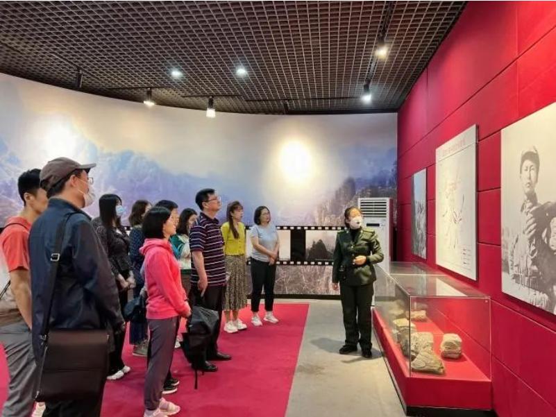 狼牙山五勇士陈列馆内陈展着历史资料、图片、抗战文物以及战斗场景雕塑等,生动地再现了抗日军民在党的领导下,为抗击日寇视死如归革命英雄主义精神以及保家卫国的英雄业绩和悲壮历史。参观期间,馆内讲解员生动讲述了狼牙山战斗中英勇抗击日伪军的5位英雄,义无反顾地纵身跳下数十丈深的悬崖,用生命和鲜血谱写气吞山河壮丽诗篇的英勇故事。教师党员认真聆听讲解员的讲述,怀着无比崇敬的心情参观了狼牙山五勇士陈列馆。感同身受那段永载史册、可歌可泣的峥嵘岁月。