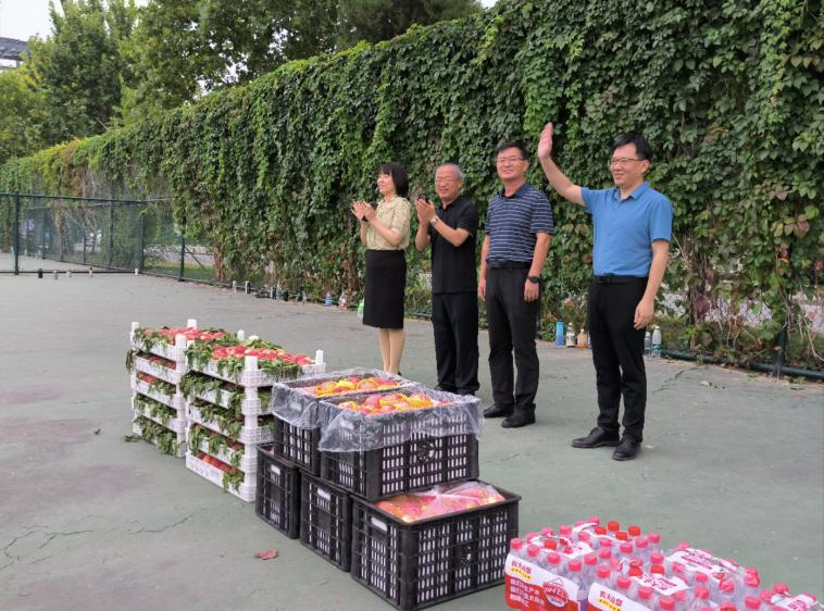 随后,领导们为同学们一一发放了精心准备的苹果、桃子以及矿泉水。一份关爱为同学们驱散数日来的疲惫,也是对大家辛苦努力的赞扬和肯定。同学们也备受鼓舞,一张张洋溢着幸福的笑脸上充满了激动和幸福。