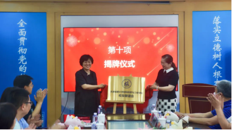 随后,郑伟、尚静媛为校友联谊会揭牌。