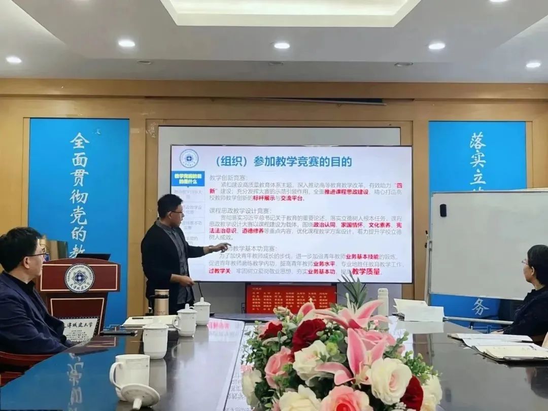 吕晨以“怎样在教学竞赛中脱颖而出?——教学竞赛经验分享”为题,为大家明确了教学竞赛的目的,强调教师设计课程一定要有核心的、先进的教育理念做抓手,同时亲身示范,为大家呈现了一堂20分钟的精彩课堂。吕晨用别出心裁的板书、抑扬顿挫的讲授、自信幽默的台风、精准细致的把控等,全方位地为在场教师展现了应如何通过勤思精思的设计与互动提升课堂吸引力与课程质量。整个课堂设计精妙、环环相扣、重点突出、引人入胜,与会教师均受益匪浅。他还从课程设计、备赛准备、思政提炼等多方面分享其教学经验与竞赛技巧,鼓励青年教师潜心锤炼基本功,深挖课程亮点,做好以学生为中心的课程体系建设。